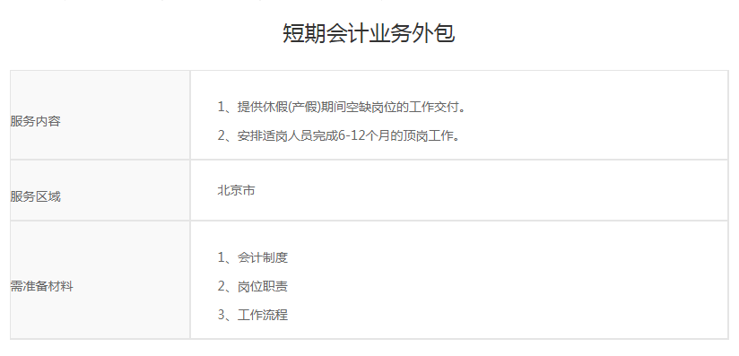 短期会计业务外包