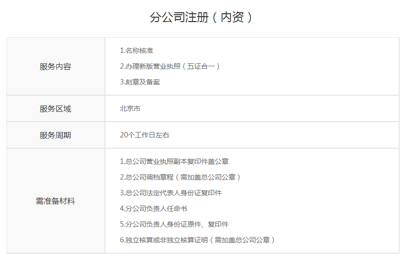 分公司注册(内资)