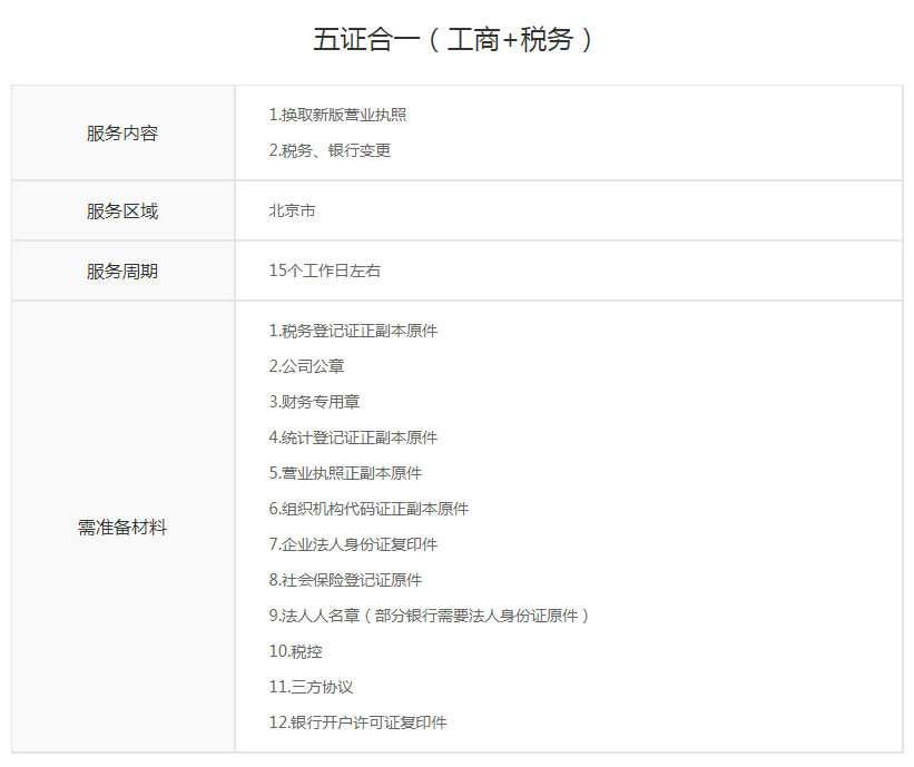 五证合一(工商+税务)