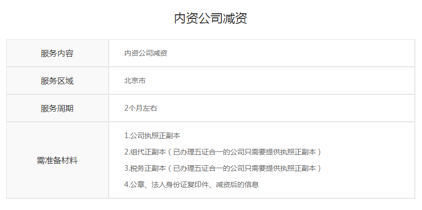 内资公司减资