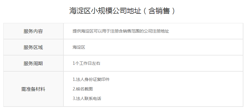 海淀区小规模公司地址(含销售)